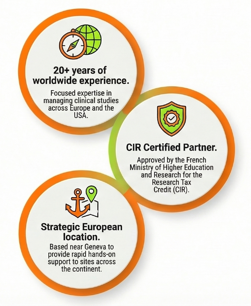 Kirsten Clinical Research is a trusted partner for the coordination and management of clinical trials. Accredited by the French Ministry of Higher Education and Research under the Research Tax Credit (CIR), the company has been supporting sponsors and study partners since 2011.